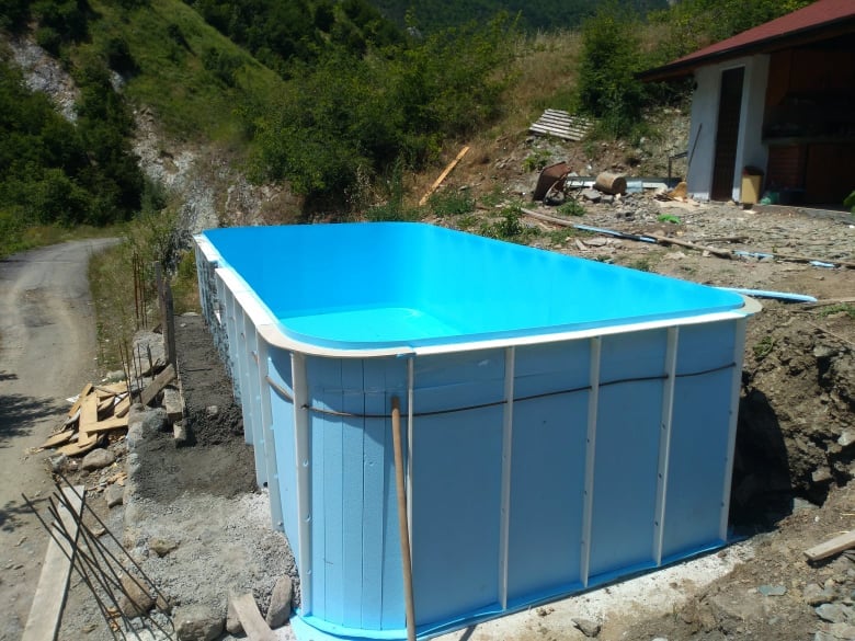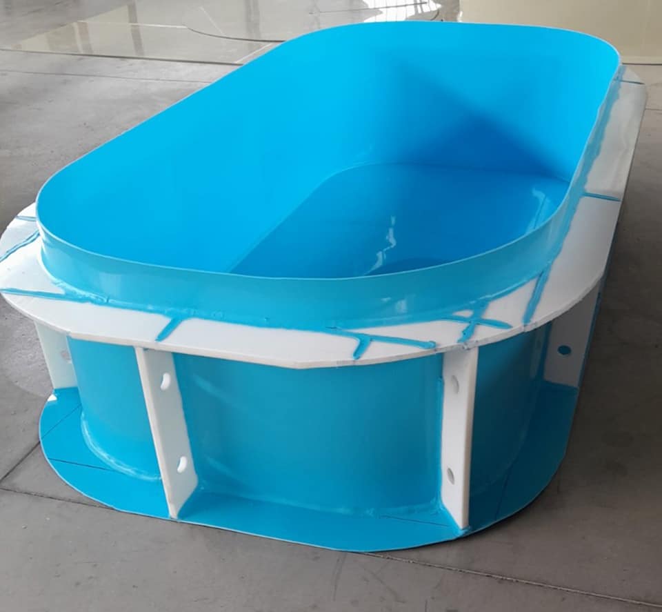 Базените ги произведуваме според барањата на нашите клиенти. Максималната длабочина е 1,5 м. Од истиот материјал може да се изработат и скали за во базенот.